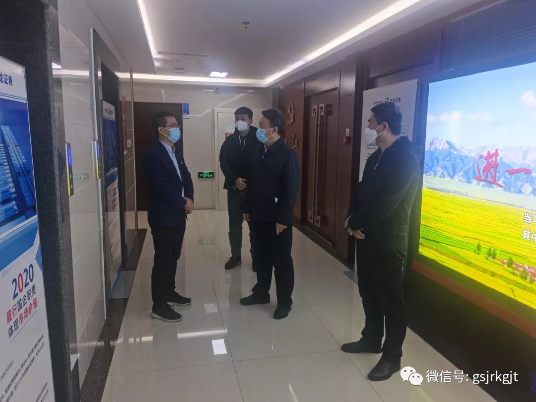 祁建邦一行采取“四不兩直”的方式,先后來到華龍證券東崗西路營業部、甘肅金控擔保集團、隴原融資租賃公司和甘肅股權交易中心,看望慰問值班值守員工,詳細了解各單位疫情防控值班值守安排、防疫舉措和業務發展、服務保障有關情況。他強調,一要切實提高政治站位,各單位主要負責人要扛牢疫情防控“第一責任人”責任,履好職盡好責,不懈怠不缺位,看好自己的門,管好自己的人,層層壓實責任,確保集團防疫工作高效開展。二要充分認識當前疫情形勢的復雜性、不確定性,時刻繃緊疫情防控這根弦,堅決貫徹落實屬地疫情防控各項規定和措施要求以及集團工作部署,扎緊筑牢內部防線,嚴把人員和場所關口,做到底數清、情況明,隨時做好緊急情況應急處置準備,確保安全無憂。三要充分發揮自身金融優勢,大力推動業務發展,靈活運用各項金融手段,協同聯動,全力支持疫情防控和經濟社會發展,持續發揚開拓創新的優良作風和攻堅克難的擔當精神,為我省打贏疫情防控遭遇戰、阻擊戰貢獻金控力量。