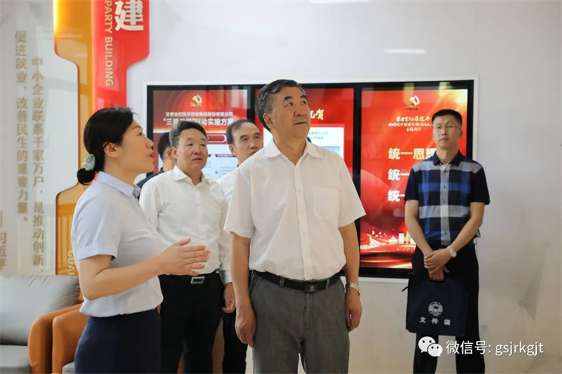 郭承錄實(shí)地觀摩了企業(yè)黨建引領(lǐng)、業(yè)務(wù)開展和文化建設(shè)工作,重點(diǎn)了解政府性融資擔(dān)保體系建設(shè)、風(fēng)險(xiǎn)防范和數(shù)字化轉(zhuǎn)型等情況,并召開座談會(huì),聽取甘肅金控集團(tuán)服務(wù)實(shí)體經(jīng)濟(jì)、深化國企改革、完善金融板塊和防范化解重點(diǎn)風(fēng)險(xiǎn)等情況匯報(bào)。