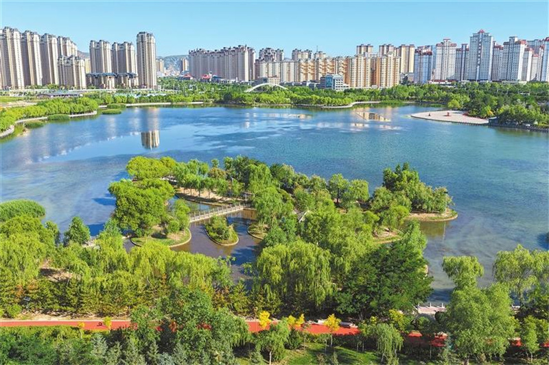 依托引洮工程建成的定西湖公園綠植環繞,水面清澈如鏡。(本版圖片攝影:記者郁婕 丁凱)